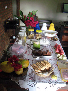 Servido em nossa agradável varanda o hóspede irá alimentar-se bem antes dos mergulhos e caminhadas na maravilhosa praia de Taipu de Fora.